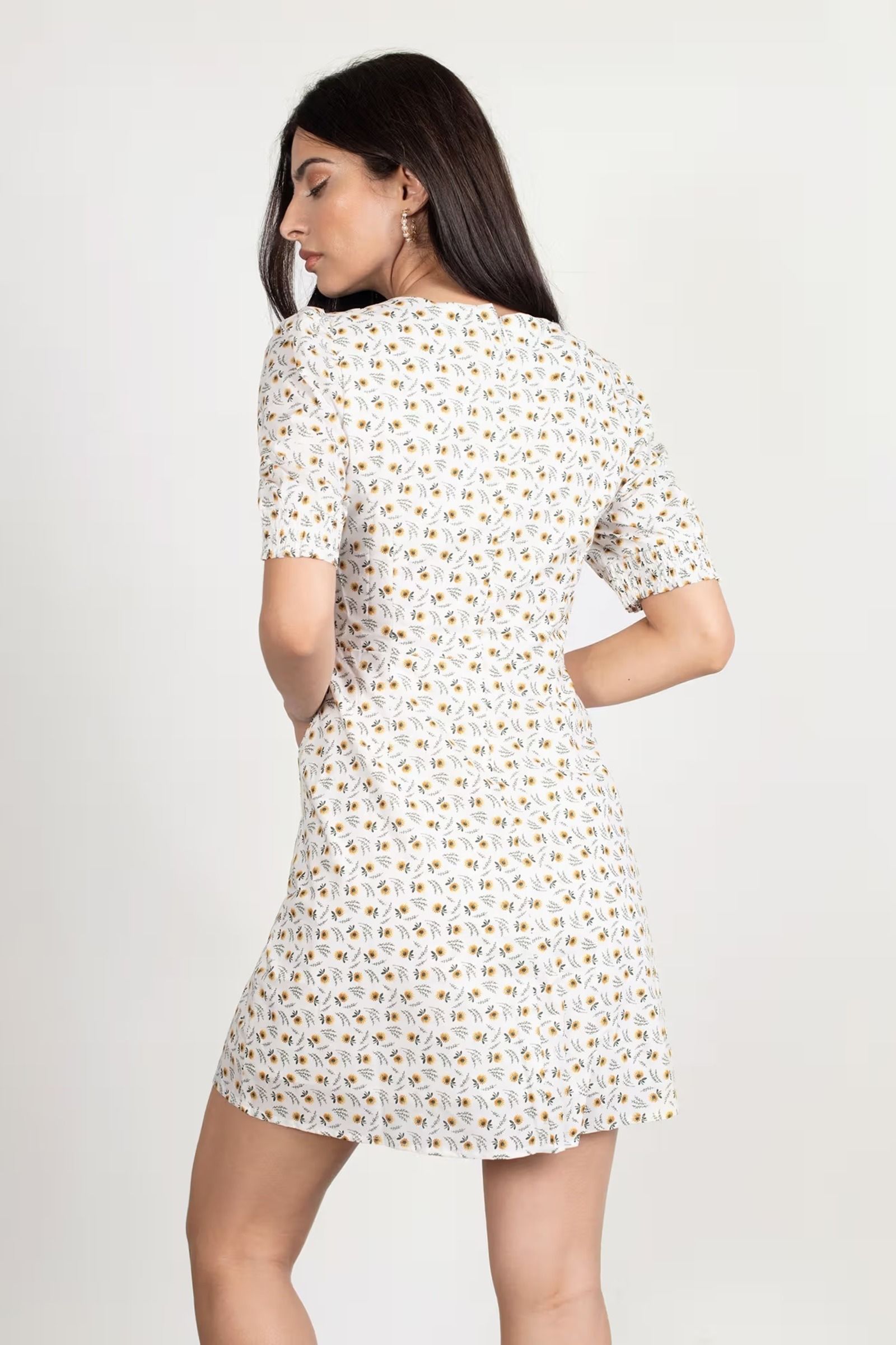 Revamp your look with the Kylaa Puff Sleeve Skater Mini Dress in White Multi! Zip into chic with its mini silhouette, ruche at the neckline, and smock the sleeve hems for a touch of sophistication. Pocket your essentials and step out in style, fully lined for comfort. Perfect for making a statement wherever you go!